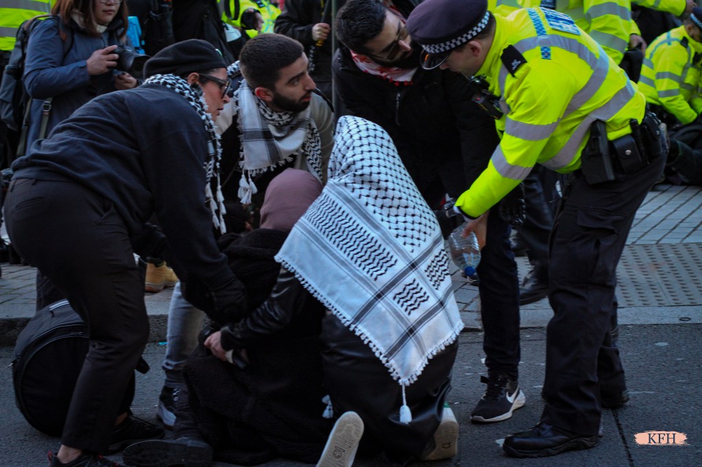 There is a photo I took where she had fainted and you see an officer approach those helping her. If my camera lens went wider (it was a 50mm) it would have captured those being arrested behind, a man being stripped naked and the massive police presence. I tell this story because it shows how the subject of the photo is not justified by what happens beyond it. Nothing justifies the lack of action by the Metropolitan Police to not help a woman get to safety even if, hypothetically, the wider image shows her trying to hit an officer because that one photo I took should be powerful enough.